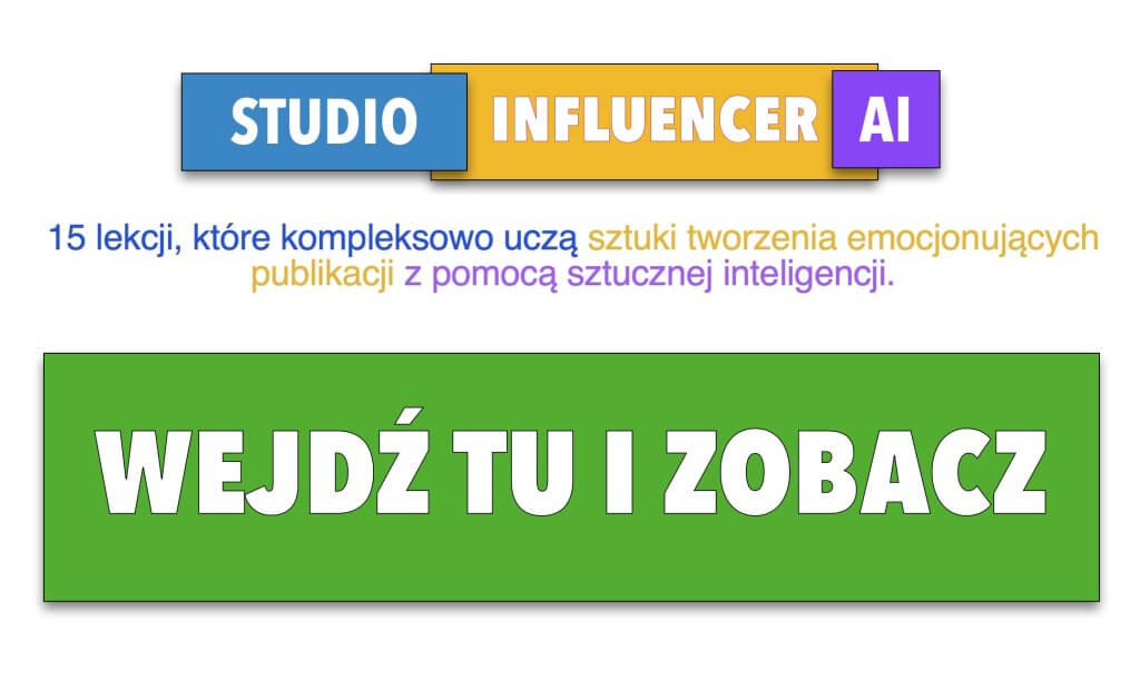 Albo dołącz do Studio Influencer AI, do którego dostęp otrzymasz natychmiast, a chwilę później pojawią się też Twoje dotychczasowe szkolenia.